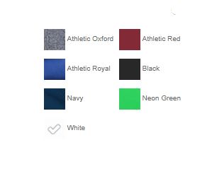 | Color | Athletic Oxford, Athletic Royal, Navy, White, Neon Green, White, Black, Athletic Red |